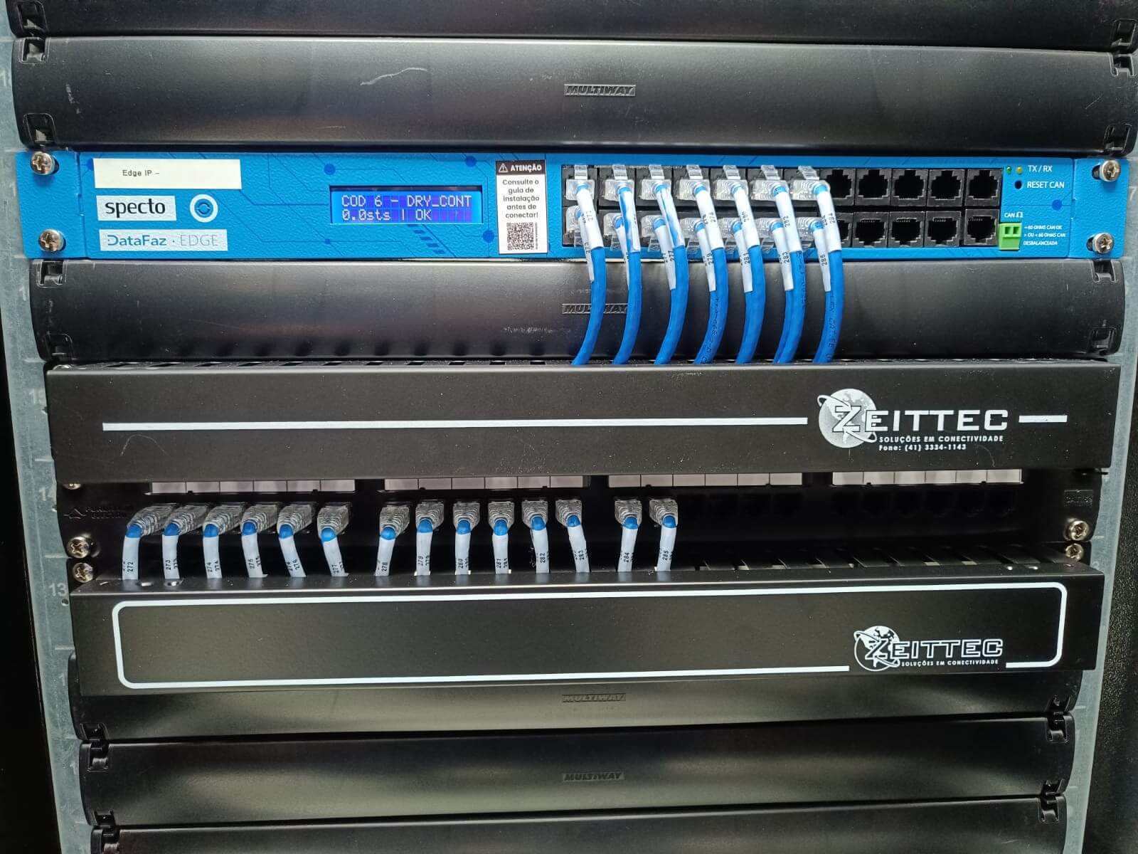 1. Hardware na Ponta (Edge): Equipamentos e sensores desenvolvidos pela Specto, instalados fisicamente pela Zeittec nos racks e corredores.